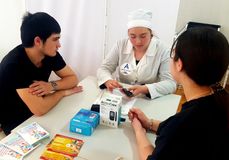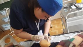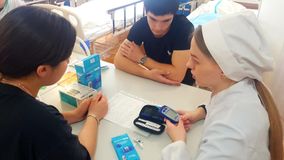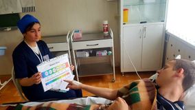 16 апреля соревновались конкурсанты в категории "Студенты". Их конкурсное задание также состояло из двух Модулей: уход за пациентом в условиях стационара и работа в Школе здоровья "Сахарный диабет". Необходимо было оценить функциональное состояние пациента, собрать жалобы и выявить нарушенные потребности, дать таблетку антибиотика, а также приложить грелку к ногам. В Модуле "Школа сахарного диабета" участники чемпионата проводили беседу, в рамках которой рассказывали о функции глюкозы в организме, о нормах уровня сахара в крови, демонстрировали правила подготовки глюкометра к работе и технику проведения глюкометри.