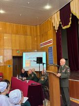 9 октября - День воинской славы России. В этот памятный день разгрома советскими войсками немецко-фашистских войск в битве за Кавказ (1943 год) в актовом зале СОМК провел Урок мужества Гецаев В.А., полковник, ветеран боевых действий, председатель Совета ветеранов г. Владикавказа, преподаватель дисциплины "Защита Родины и безопасность жизни". Гостями мероприятия были Хачикян Арутюн Гургенович, участник вов, 99 лет, Каболов Султан Наликович генерал-майор авиации, почетный председатель Совета ветеранов РСО-Алания, Тагаев Анатолий Дзастемурович полковник, ветеран боевых действий, председатель Совета ветеранов Правобережного района г. Владикавказ, Елканов Владимир Хазретович генерал-майор, инспектор Южного военного округа.