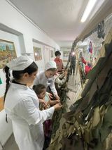 С первых дней начала СВО в Северо- Осетинском медицинском колледже налажена работа по плетению маскировочных сетей. Студентки, проживающие в общежитии колледжа, плетут сети в свободное от учебной деятельности время. В начале сентября к плетению сетей захотели подключиться и учащиеся 45 гимназии. Вместе со своим наставником Шотаевой Жанной Константиновной они в неделю два раза приходят после уроков в колледж и плетут маскировочные сети. Обучают школьников студенты колледжа под руководством Дзукаевой Н.Р. У многих из ребят отцы находятся в зоне проведения СВО. Сегодня учащиеся в военном классе колледжа в торжественной обстановке в присутствии заместителя директора по ВР Гаховой Л.В., преподавателя дисциплины "Основы безопасности жизни и защиты Родины" полковника Гецаева В.А. передали свою первую сплетенную сеть полковнику Цурову Султану для отправки ее на фронт.