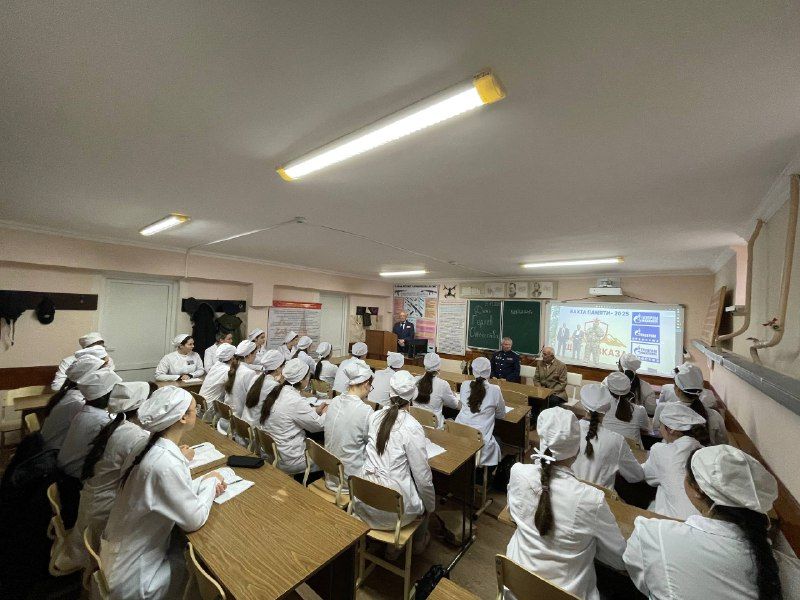 В Северо-Осетинском медицинском колледже прошел яркий и эмоциональный открытый урок, который проводил Гецаев В.А. Центральными фигурами встречи стали заместитель атамана Союза воинов казаков и зарубежья по вопросам воспитания молодежи полковник Климов Виктор Анатольевич и , Хачикян Арутюн Гургенович, отмечающий в феврале свое столетие. В ходе увлекательного разговора гости поделились воспоминаниями о военном прошлом, переживаниях и победах. Полковник Климов подчеркнул значимость патриотического воспитания молодежи, отметив роль традиционных казачьих ценностей в формировании характера будущего защитника Родины. Особенное внимание привлек рассказ ветерана Арутюна Гургеновича, который, несмотря на почтенный возраст, сохранил ясность ума и остроту восприятия. Студенты активно задавали вопросы обо всем, начиная от повседневных условий солдатской службы времен войны и заканчивая секретами долголетия и силы духа. Особенно запомнился момент, когда будущий студент спросил о значении дружбы и товарищества на фронте. Арутюн Гургенович ответил проникновенно, вспомнив боевые эпизоды, когда товарищи спасли друг друга ценой невероятных усилий и риска собственной жизнью. Встреча завершилась аплодисментами и искренними пожеланиями здоровья и благополучия гостям. Этот незабываемый урок останется надолго в сердцах студентов и преподавателей, укрепив связь поколений и напомнив молодым людям о важности уважения к истории своей страны.