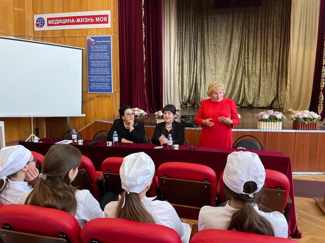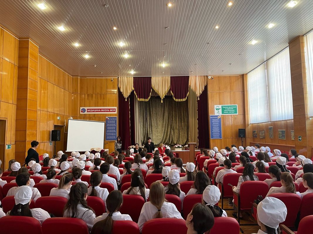 В актовом зале СОМК на тему нравственного воспитания молодежи со студентами первых курсов провели беседу Ирина МАКОЕВА, председатель комитета женщин МОДа «ВСО» (Аланты ныхас); Земфира Давыдовна КУЛОВА, народная артистка Северной Осетии, диктор, телеведущая ГТРК "Алания"; Кодзасова Валентина Хамазаевна, заслуженный работник здравоохранения РФ и РСО–А, кандидат фармацевтических наук, председатель Общественного совета по защите прав пациентов при Росздравнадзоре по РСО–А. Студенты задавали интересующие их вопросы и остались очень довольны прошедшей встречей.