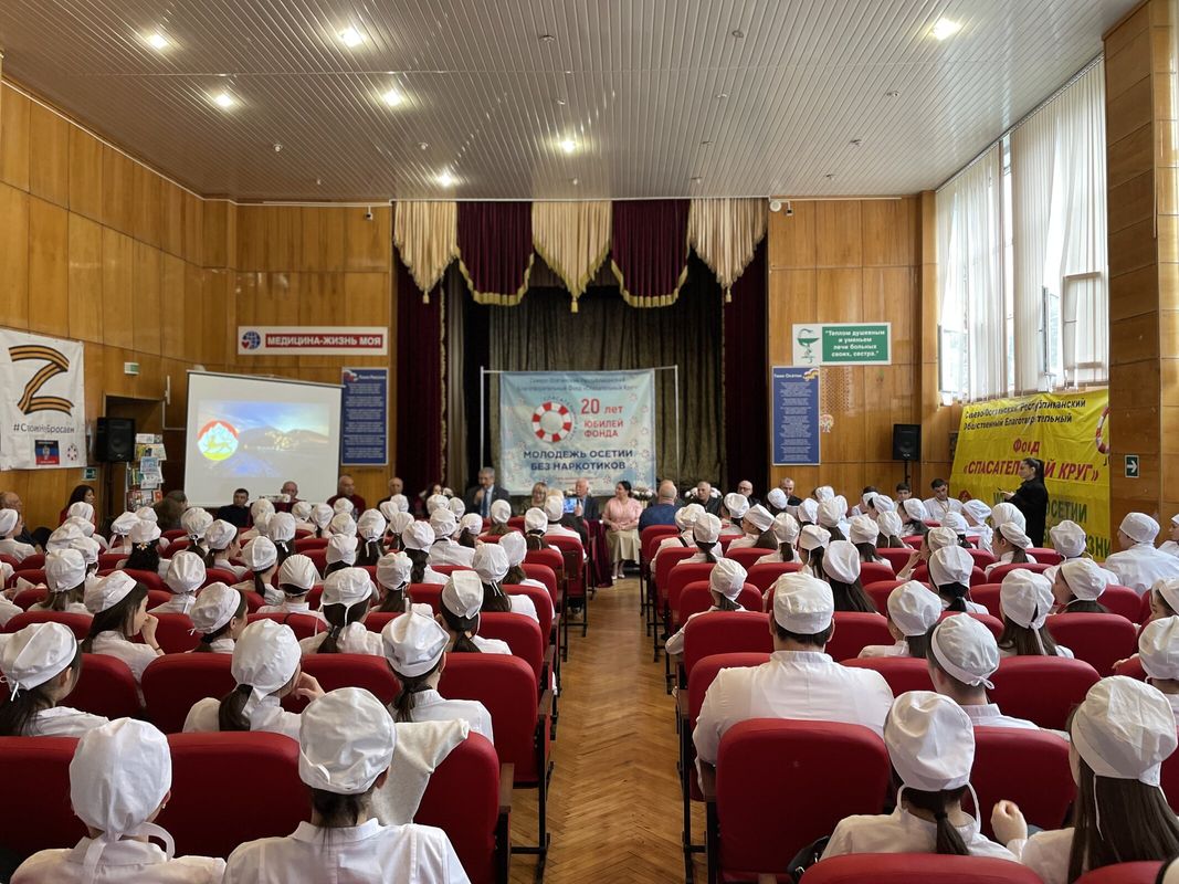 В актовом зале СОМК прошло масштабное мероприятие, приуроченное ко Дню здоровья. Акция под названием «ЗДОРОВЫЙ Я – ЗДОРОВАЯ СТРАНА» проводилась совместно с Домом дружбы народов РСО-А и Благотворительным фондом «Спасательный круг». В актуальном разговоре о сохранении своего здоровья и профилактике негативных явлений в жизни общества со студентами участвовали представители многих различных различных организаций. Приглашенными гостями мероприятия были: представитель Министерства РСО-Алания по национальной политике и внешним связям Дарчиева Залина Радиковна, советник министра РСО-Алания по национальной политике и внешним связям Кайтукова Тамара Габоевна, декан медико – профилактического факультета СОГМА, к.м.н., председатель Комиссии по здравоохранению и здоровому образу жизни Общественного совета МО г.Владикавказ Дзулаева Индира Юрьевна, председатель Северо – Осетинского республиканского благотворительного фонда «Спасательный круг» Дзгоев Геннадий Солтанбекович, врач высшей категории, ветеран здравоохранения, зам. председателя Комиссии по здравоохранению и здоровому образу жизни ОС МО г.Владикавказ Макоев Борис Агубеевич, старший инспектор Отдела организации деятельности участковых уполномоченных полиции и подразделений по делам несовершеннолетних МВД РСО-Алания, майор полиции Парсиев Тимур Шамирович, генеральный директор фирмы «Алгус», чемпион мира по вольной борьбе среди ветеранов Гусов Олег Асланбекович, мастер спорта международного класса по вольной борьбе, двухкратный чемпион России Ахмадов Зелимхан Мамедович, чемпион Европы и мира среди молодежи, шестикратный чемпион РСФСР, призер чемпионатов СССР, российский рестлер, мастер спорта СССР международного класса по вольной борьбе Зангиев Виктор Дзантемирович, представители благотворительного фонда «Спасательный круг»: Аслан Коцоев, Аслан Синаев, Важа Дудаев, Руслан Рамонов. Встреча началась с приветствия участников директором СОМК Ревазовым Таймуразом Дмитриевичем. В своих выступлениях гости мероприятия подробно раскрыли многие вопросы, основными из которых были: 1.взаимодействие органов государственной власти, местного самоуправления и других представителей институтов гражданского общества в вопросах консолидации усилий по профилактике негативных явлений в жизни общества; 2.профилактика наркомании – приоритетная тема деятельности Северо – Осетинского республиканского благотворительного фонда «Спасательный круг»; 3.некоторые вопросы оперативной работы участковых уполномоченных полиции и подразделений по делам несовершеннолетних МВД РСО-Алания по профилактике наркомании и других пороков общества среди несовершеннолетних и молодежи. Закончилась встреча совместным просмотром фильма «Здоровый образ жизни – мифы и реальность».